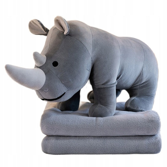 MASKOTKA PODUSZKA PRZYTULANKA Z KOCEM DUŻY NOSOROŻEC SAFARI 3w1