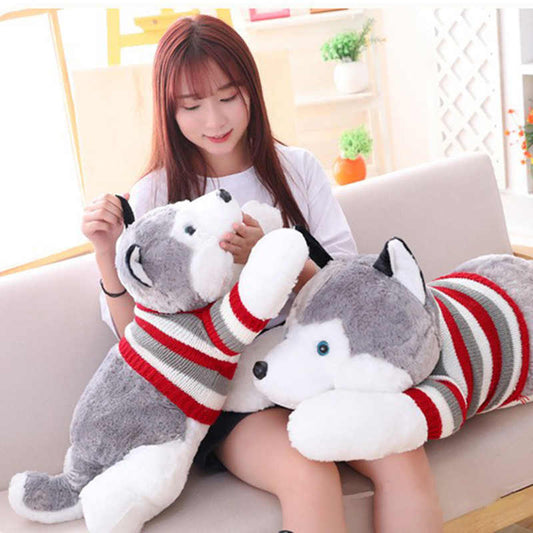 MASKOTKA PRZYTULANKA PLUSZAK PIES HUSKY LEŻĄCY W SWETERKU