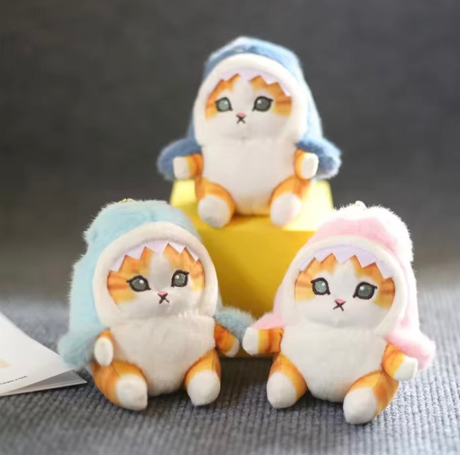 BRELOK ZAWIESZKA PLUSZOWY SŁODKI KOT REKIN RÓŻOWY KAWAII DUŻY 13 cm