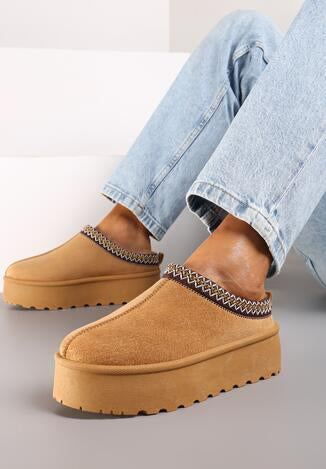 KLAPKI DAMSKIE OCIEPLANE Z FUTERKIEM NA PLATFORMIE CIEPŁE WSUWANE