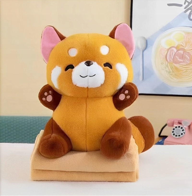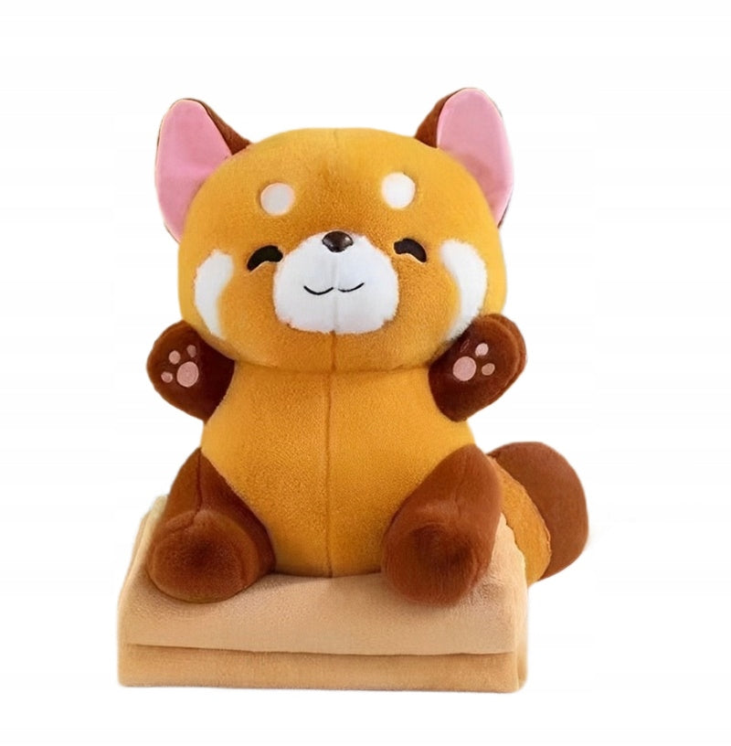 MASKOTKA PODUSZKA PRZYTULANKA Z KOCEM DUŻA PANDA CZERWONA RUDA SZOP 3w1