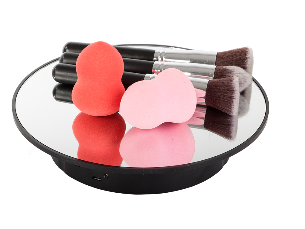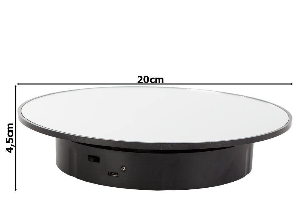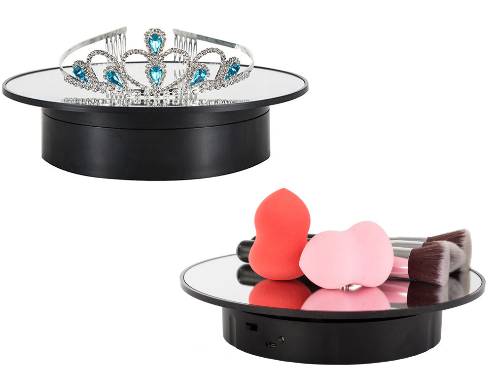 Obrotowa podstawka do idealnie urządzenie do eksponowania biżuterii, zegarków oraz innych produktów. Urządzenie przyda się każdemu fotografowi, lustrzana powierzchnia nada zdjęciom niesamowity klimat oraz doda im uroku. Podstawka świetnie nada się do witryny sklepowej by eksponować wybrane towary.